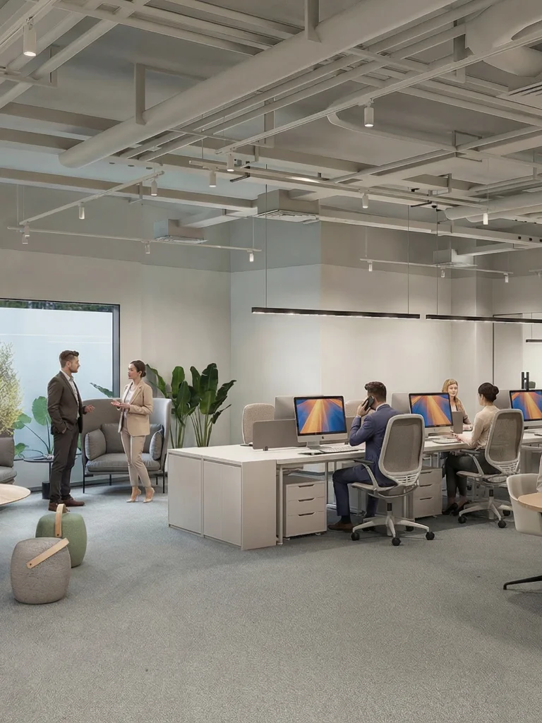 Workspace Design creates functional, inspiring environments that boost productivity, collaboration, and employee well‑being.
